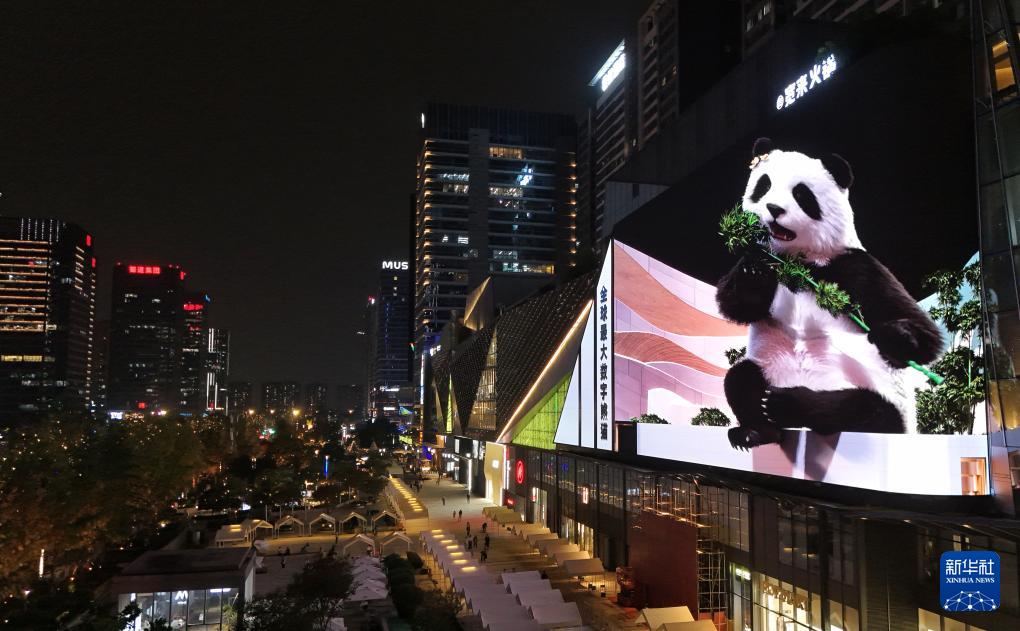 10月14日拍攝的裸眼3D數(shù)字熊貓。