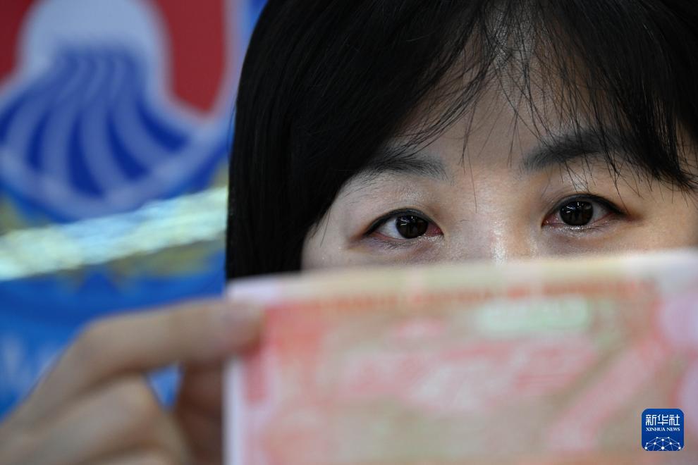 10月14日,移民管理警察曹銳在進(jìn)行票據(jù)真?zhèn)巫R(shí)別。