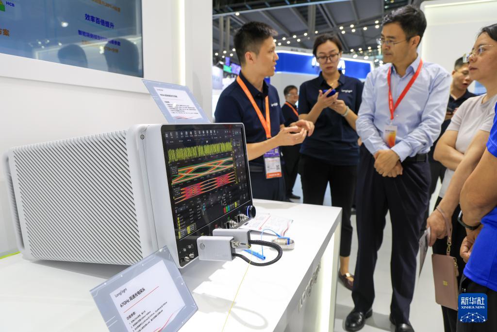 10月15日,參觀者在萬里眼公司展臺(tái)了解新一代超高速實(shí)時(shí)示波器。