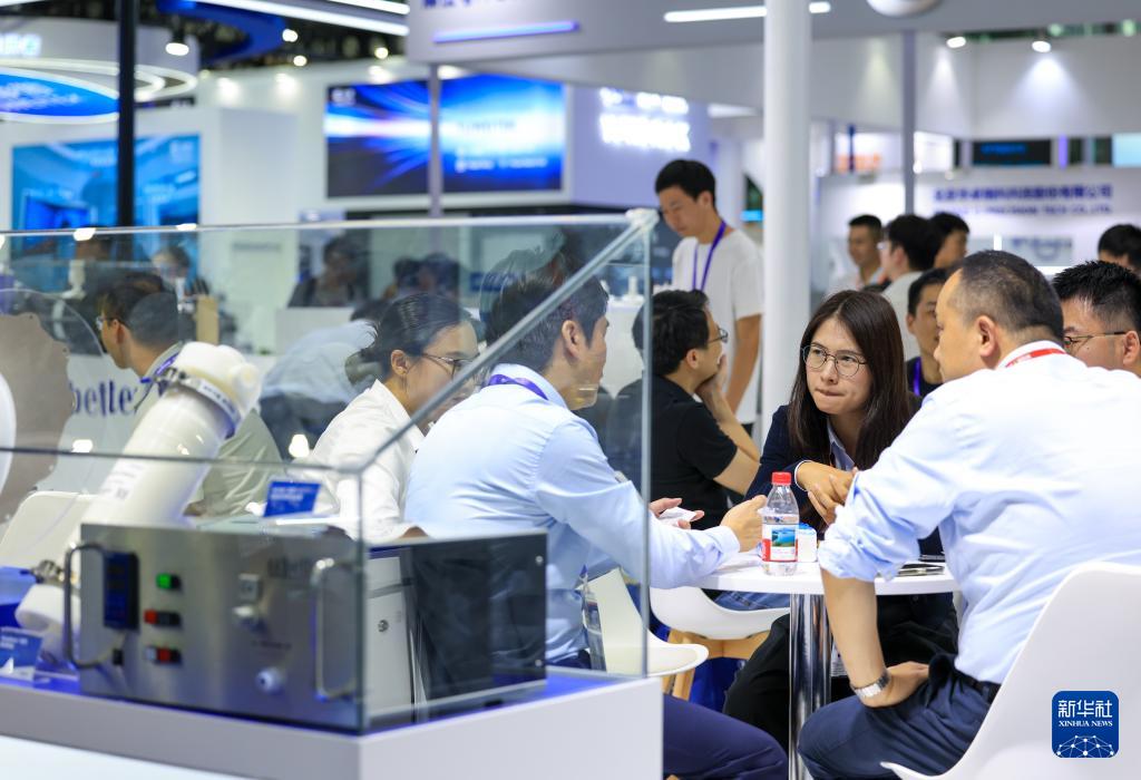 10月15日,客商在一家半導(dǎo)體企業(yè)展臺(tái)交流。