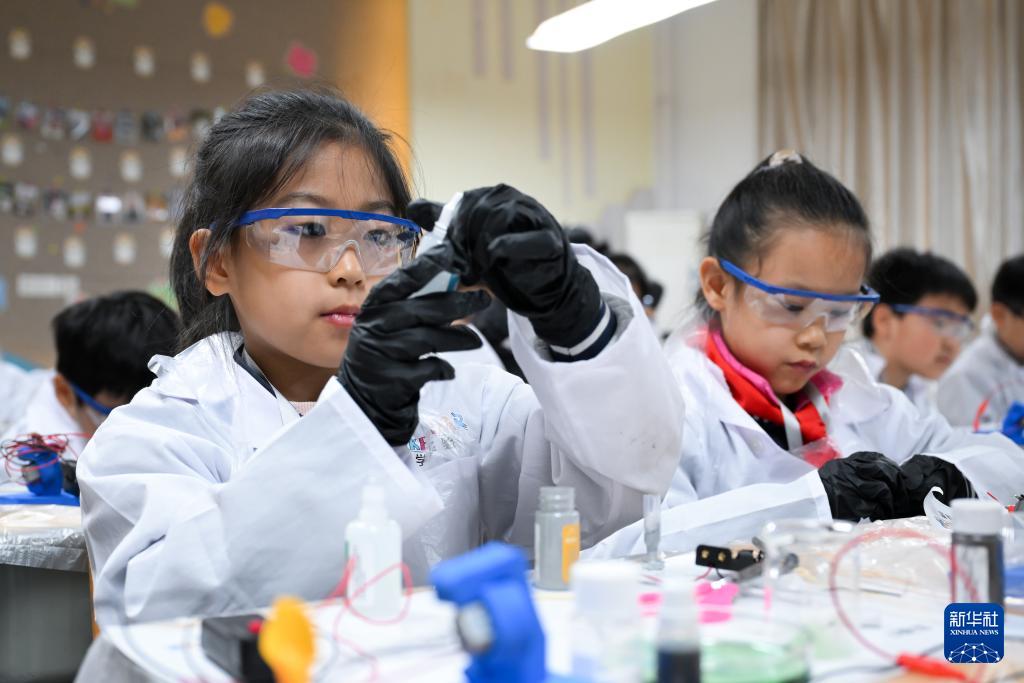 10月18日,學(xué)生在西安市新城區(qū)太華路小學(xué)參加科學(xué)實驗操作賽。