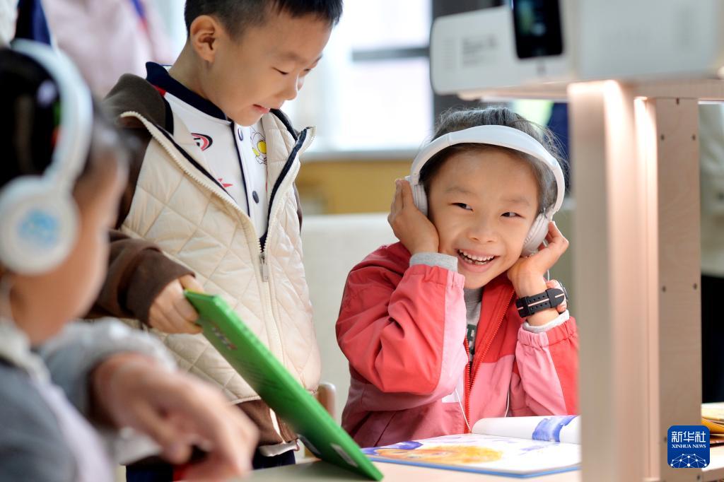 10月18日,小朋友在閱讀館體驗(yàn)AI閱讀。