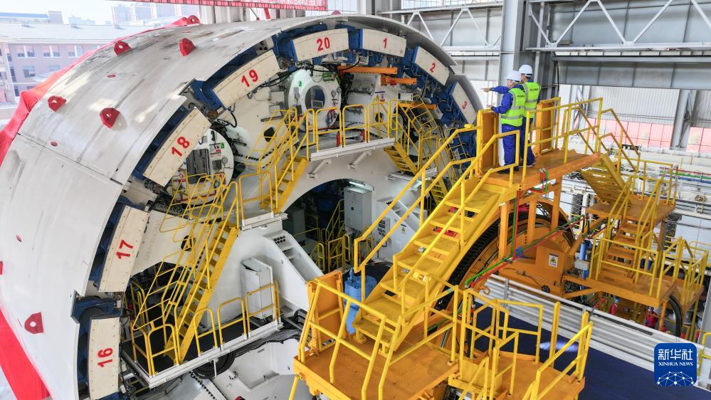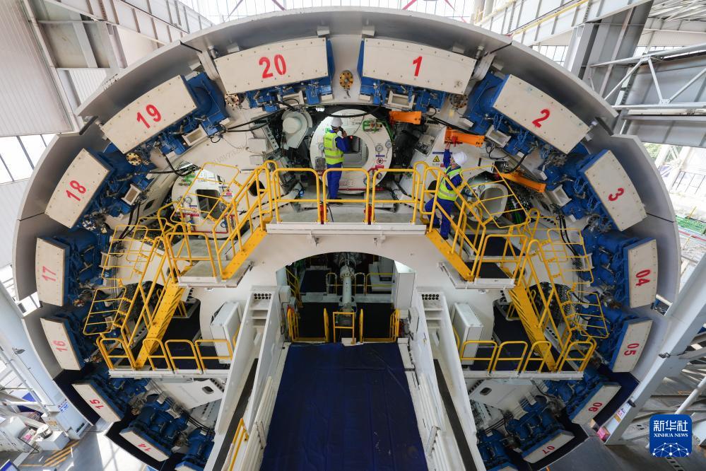 10月24日,在鐵建重工長沙第一產(chǎn)業(yè)園,工人在調(diào)試“龍崗二號”盾構(gòu)機。