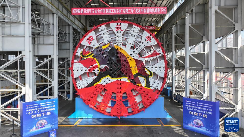 10月24日,由中鐵十四局和鐵建重工集團聯(lián)合打造的“龍崗二號”盾構(gòu)機在湖南長沙下線。這臺盾構(gòu)機整機長約117米,總重量約3600噸,開挖直徑14.31米,將應(yīng)用于深汕高鐵龍崗隧道建設(shè)。