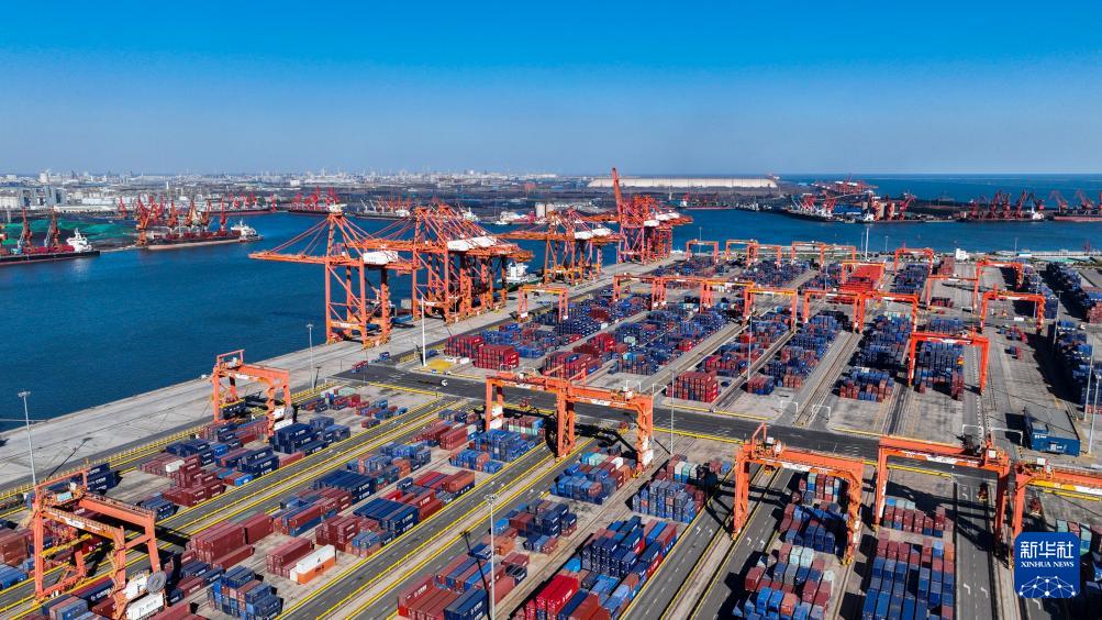 10月27日拍攝的河北省唐山港京唐港區(qū)集裝箱碼頭(無(wú)人機(jī)照片)。