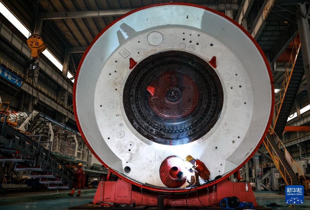 10月27日,中鐵科工集團(tuán)軌道交通裝備有限公司技術(shù)工人對(duì)盾構(gòu)機(jī)盾體進(jìn)行電焊作業(yè)。