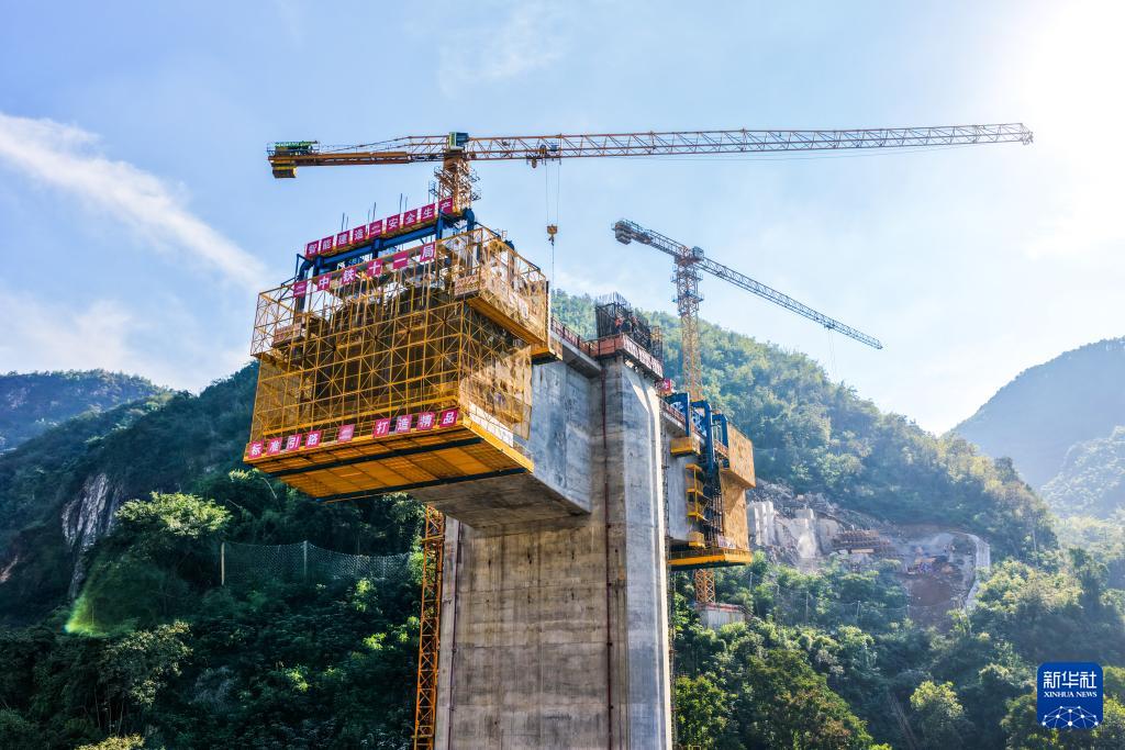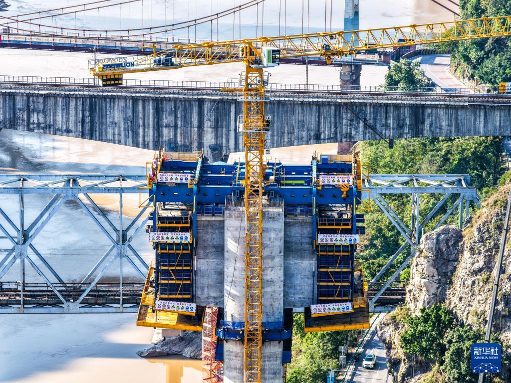 這是10月28日拍攝的西渝高鐵嘉陵江特大橋建設(shè)現(xiàn)場(chǎng)(無(wú)人機(jī)照片)。