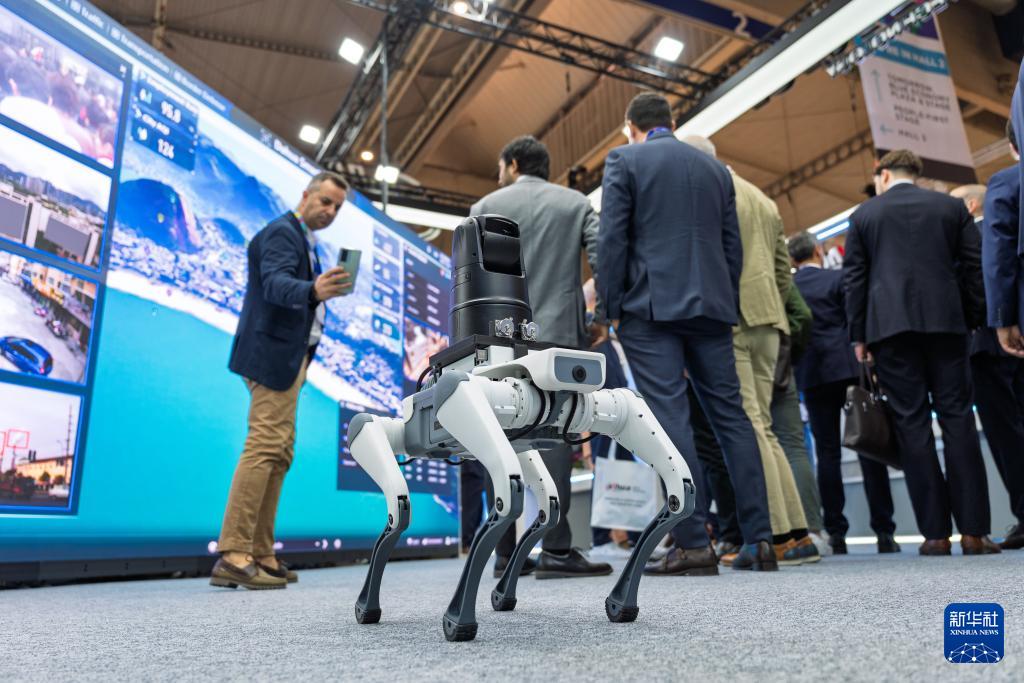 這是11月4日在西班牙巴塞羅那2025全球智慧城市大會上拍攝的機器狗。