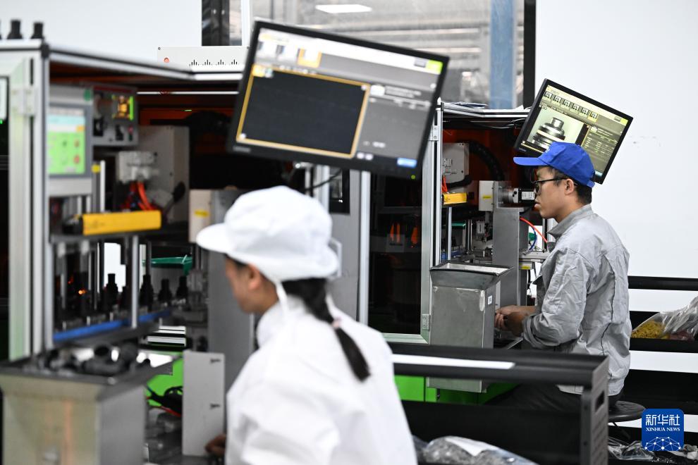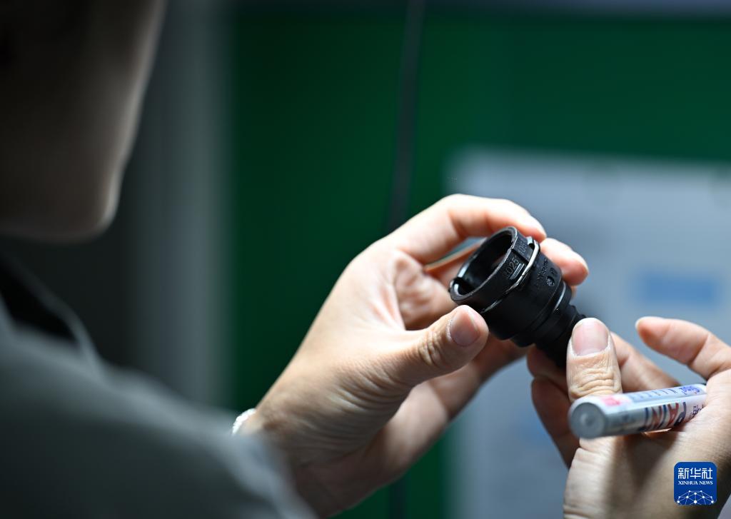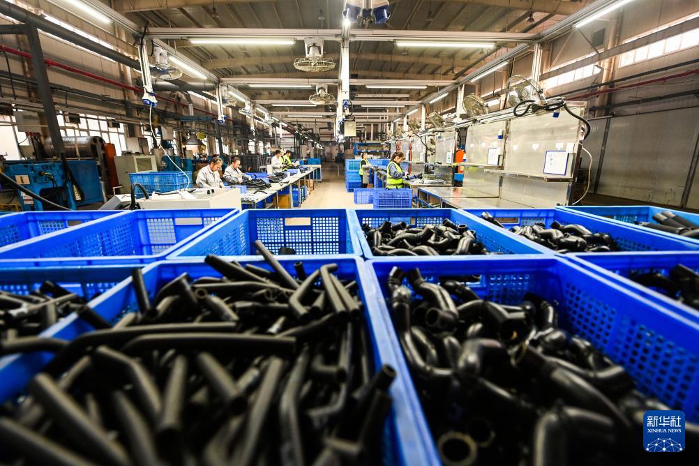 11月5日,工作人員在位于天津市濱海新區(qū)中塘鎮(zhèn)的天津鵬翎集團股份有限公司生產車間檢查汽車膠管接頭。