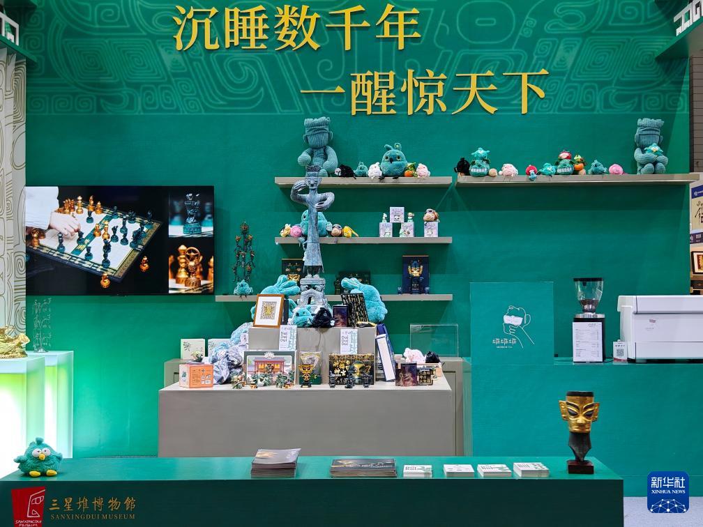 4月27日在第六屆國家考古遺址公園文化藝術(shù)周活動上拍攝的三星堆博物館文創(chuàng)展區(qū)。