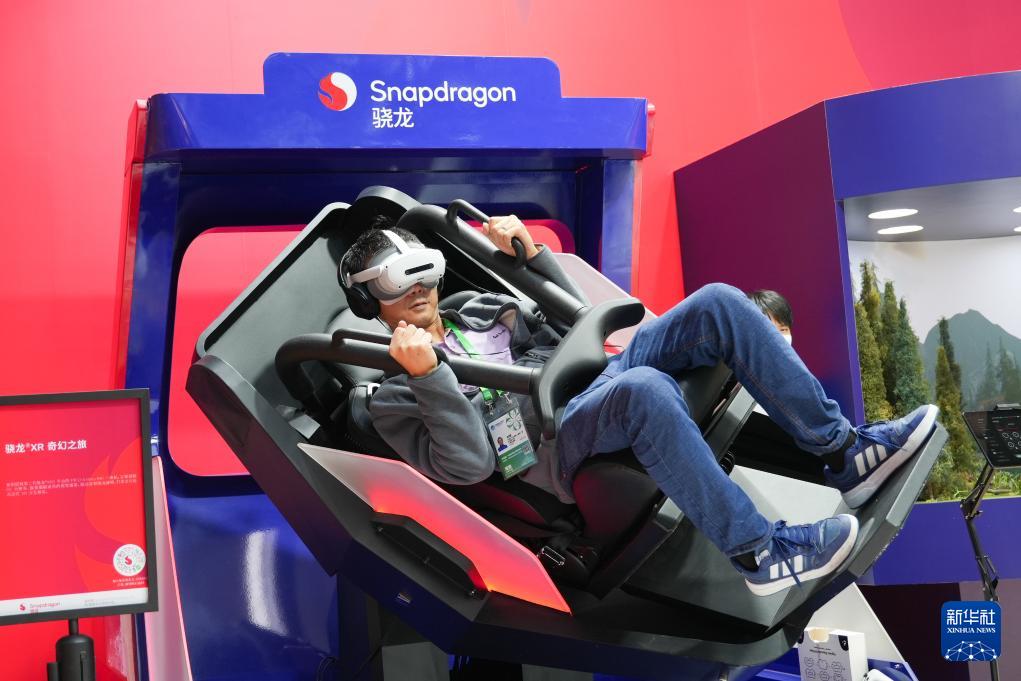 11月6日,參觀者在第八屆進博會技術(shù)裝備展區(qū)高通展臺體驗XR設備。