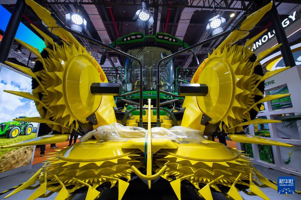 11月6日,在第八屆進博會技術(shù)裝備展區(qū)拍攝的自走式青貯收獲機。