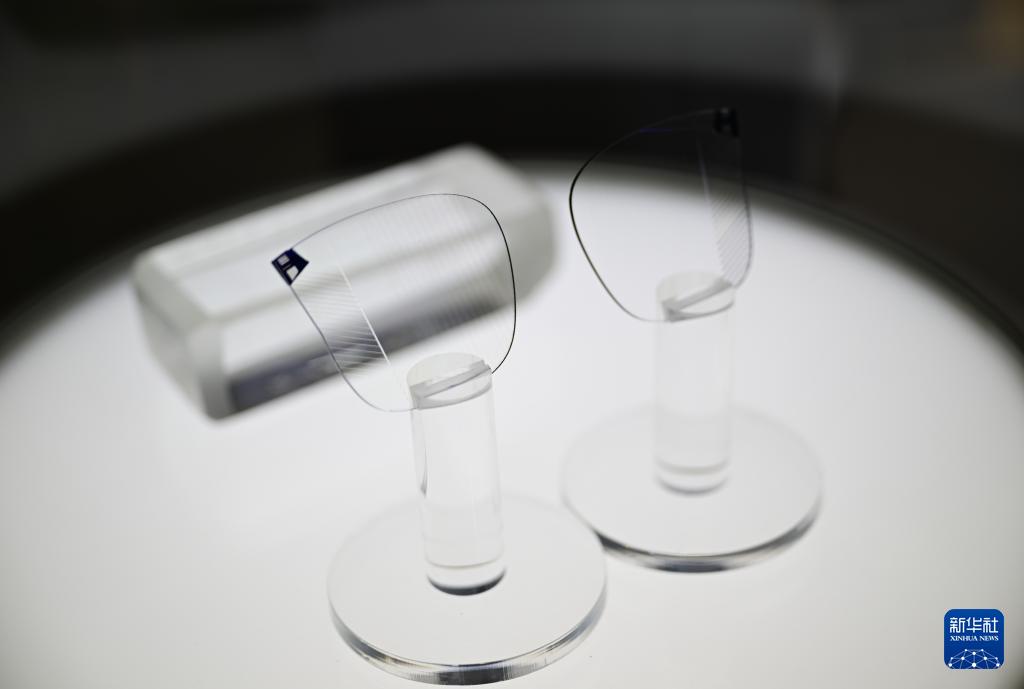 這是11月6日在第八屆進博會技術(shù)裝備展區(qū)拍攝的一款增強現(xiàn)實眼鏡鏡片。