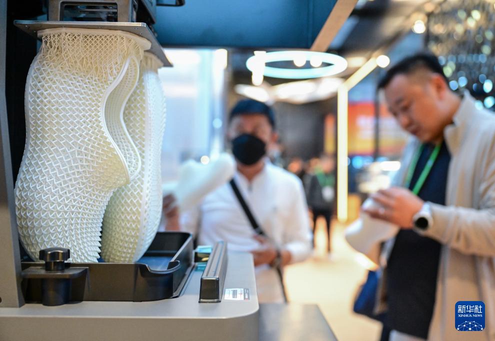 這是11月6日在第八屆進博會技術(shù)裝備展區(qū)拍攝的一款全3D打印鞋。