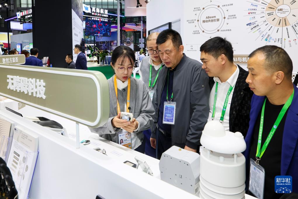 11月9日,人們?cè)诘诎藢眠M(jìn)博會(huì)服務(wù)貿(mào)易展區(qū)浦發(fā)銀行展臺(tái)體驗(yàn)互動(dòng)裝置。