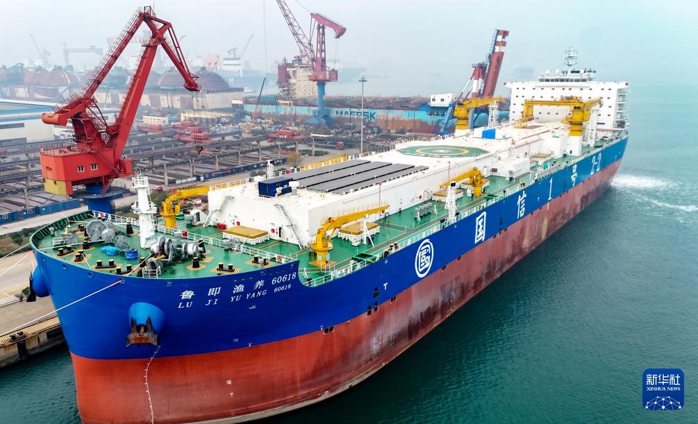 11月15日在中國(guó)船舶集團(tuán)青島北海造船有限公司拍攝的“國(guó)信1號(hào)2-2”船(無人機(jī)照片)。