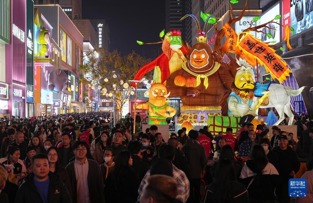 11月15日,河北省石家莊市新華區(qū)第三屆灣里廟燈會在灣里廟步行街舉行亮燈儀式,人們來這里賞燈游玩、購物休閑。近年來,石家莊市著力培育夜經(jīng)濟新場景新業(yè)態(tài),打造集美食、娛樂、購物等于一體的夜經(jīng)濟消費圈,豐富市民夜生活。