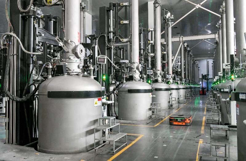 公司生產(chǎn)運(yùn)營部經(jīng)理于秀峰介紹,這些顆粒硅是由石英砂經(jīng)過高溫燃燒等工序提煉生成的高純多晶硅。這也是光伏全產(chǎn)業(yè)鏈中技術(shù)含量最高的生產(chǎn)環(huán)節(jié)之一?!盀闇p少硅料生產(chǎn)中的耗電量,我們采用自主研創(chuàng)的硅烷流化床工藝,相較于傳統(tǒng)工藝,省掉了精餾、尾氣處理等環(huán)節(jié),生產(chǎn)電耗和成本顯著下降。”于秀峰說。