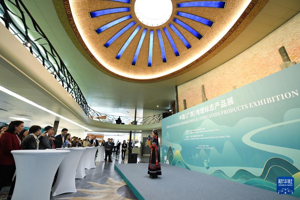 11月17日,在瑞士日內(nèi)瓦世界知識(shí)產(chǎn)權(quán)組織總部,人們參觀“中國(guó)(廣西)地理標(biāo)志產(chǎn)品展”。