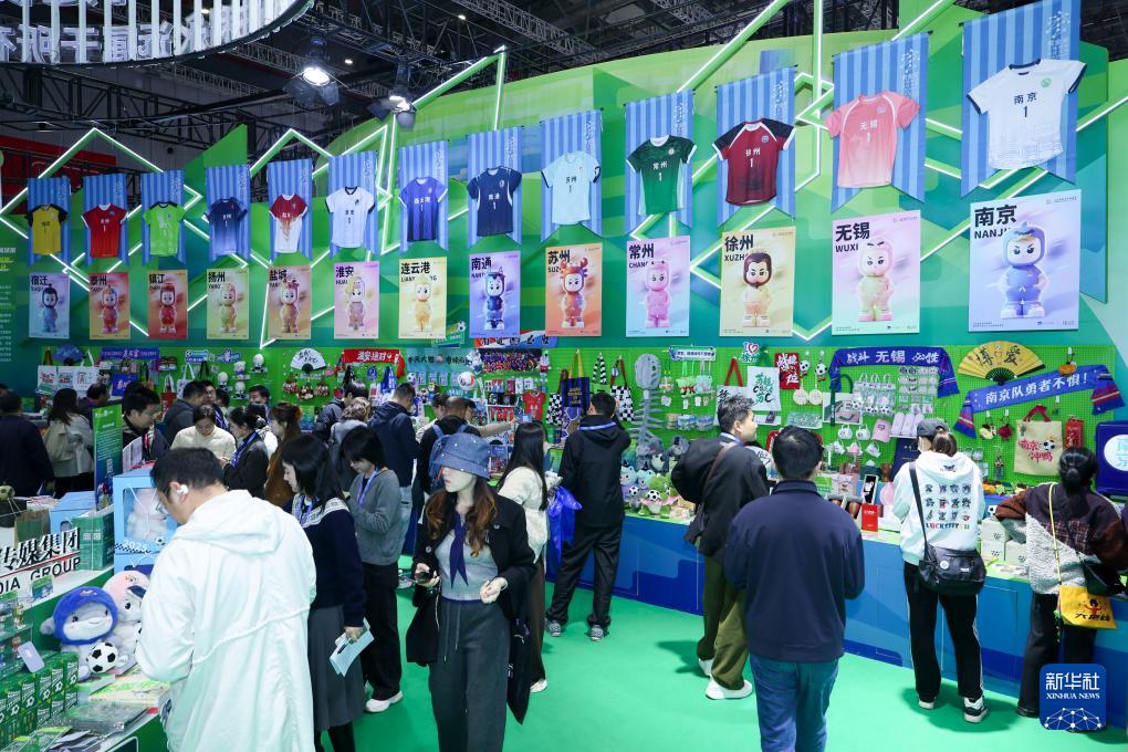 11月20日,觀眾在江蘇展區(qū)參觀蘇超文創(chuàng)產(chǎn)品。