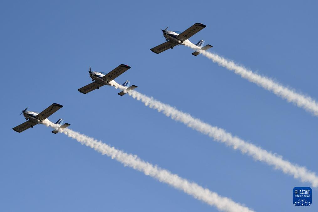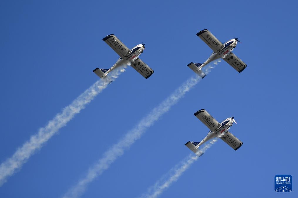 這是11月21日在株洲蘆淞機(jī)場(chǎng)拍攝的動(dòng)態(tài)飛行表演。