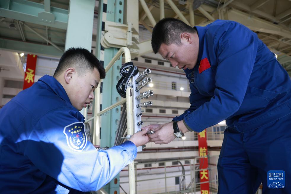 11月9日,工作人員在對神舟二十二號的供氣管路進行吹除作業(yè)。