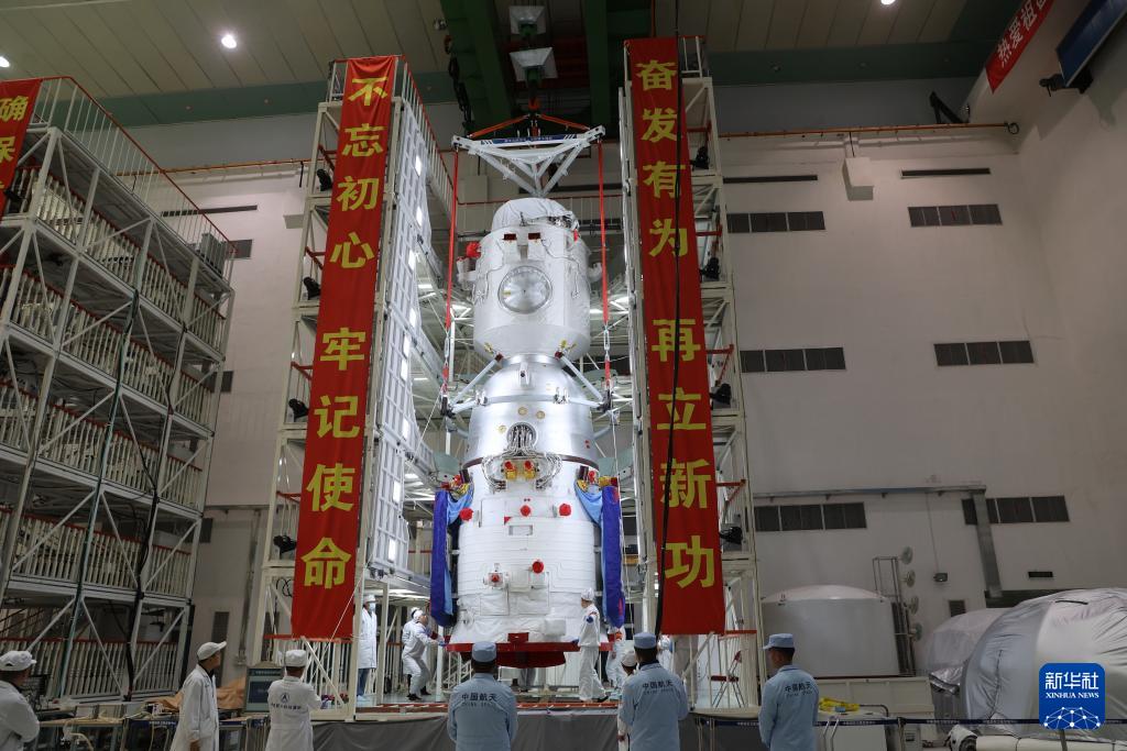 11月12日,神舟二十二號飛船準(zhǔn)備從廠房吊裝至公路運輸車。