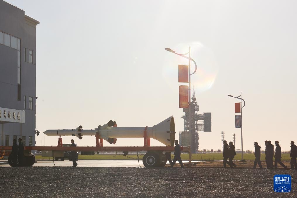 11月20日,神舟二十二號飛船與長征二號F遙二十二運載火箭組合體準(zhǔn)備轉(zhuǎn)運。