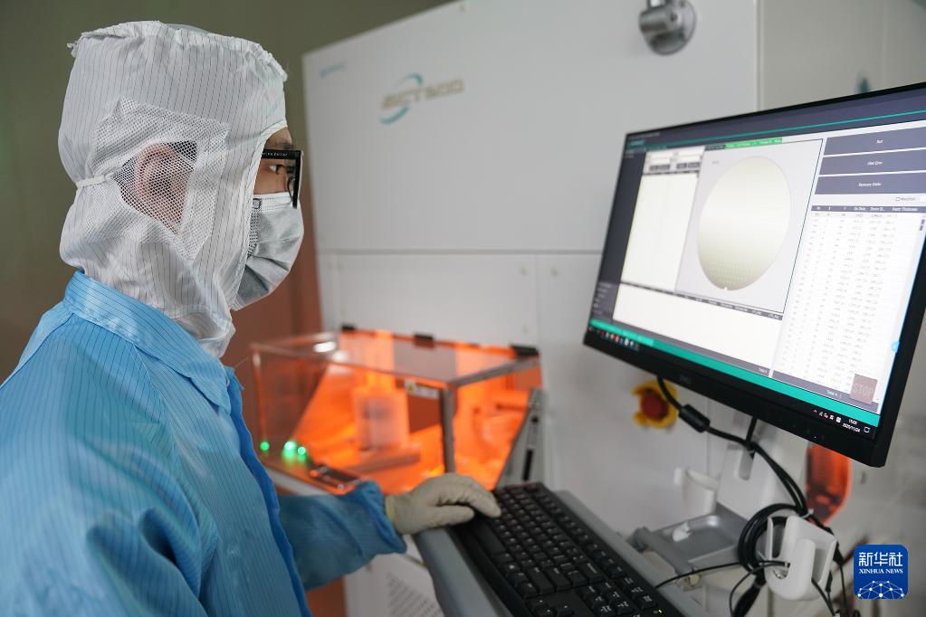 11月24日,在蘇州邁姆思半導(dǎo)體科技有限公司,工程師對(duì)加工后的硅片進(jìn)行檢測(cè)分析。
