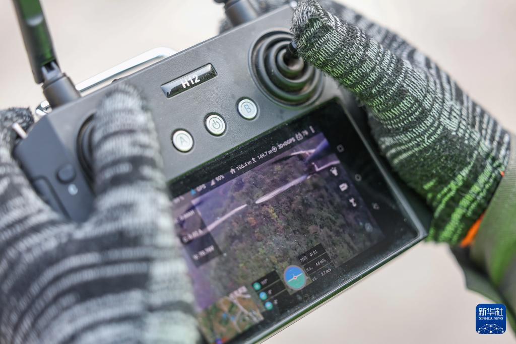11月27日,在重慶市巫溪縣中梁鄉(xiāng)35千伏西土線(xiàn)改造現(xiàn)場(chǎng),現(xiàn)場(chǎng)工作人員利用風(fēng)速測(cè)量?jī)x監(jiān)測(cè)無(wú)人機(jī)起降的作業(yè)條件。