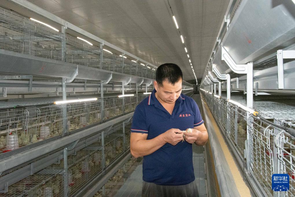 11月28日,在冷水灘區(qū)高溪市鎮(zhèn)一蛋雞雛雞飼養(yǎng)基地,工作人員在查看雛雞生長情況。