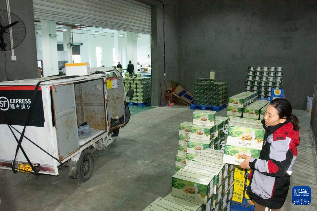 11月28日,在冷水灘區(qū)一雞蛋分揀中心,快遞員將外寄的雞蛋包裹搬運(yùn)裝車。