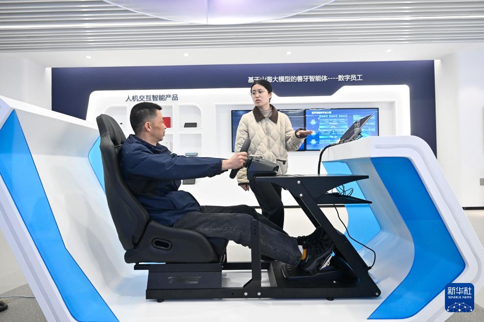 11月28日,在江蘇云知聲科技有限公司,工作人員(右)介紹一款車載人機交互智能產(chǎn)品。