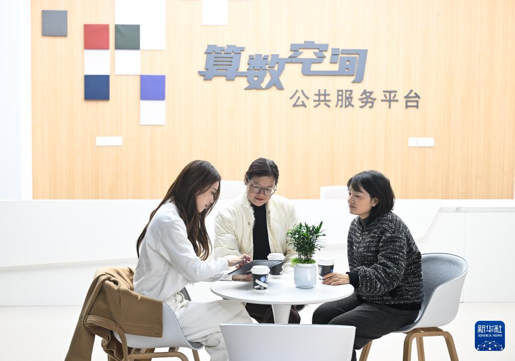 11月28日,工作人員(左一)在位于南京市鼓樓區(qū)智夢園的“算數(shù)空間”介紹情況。