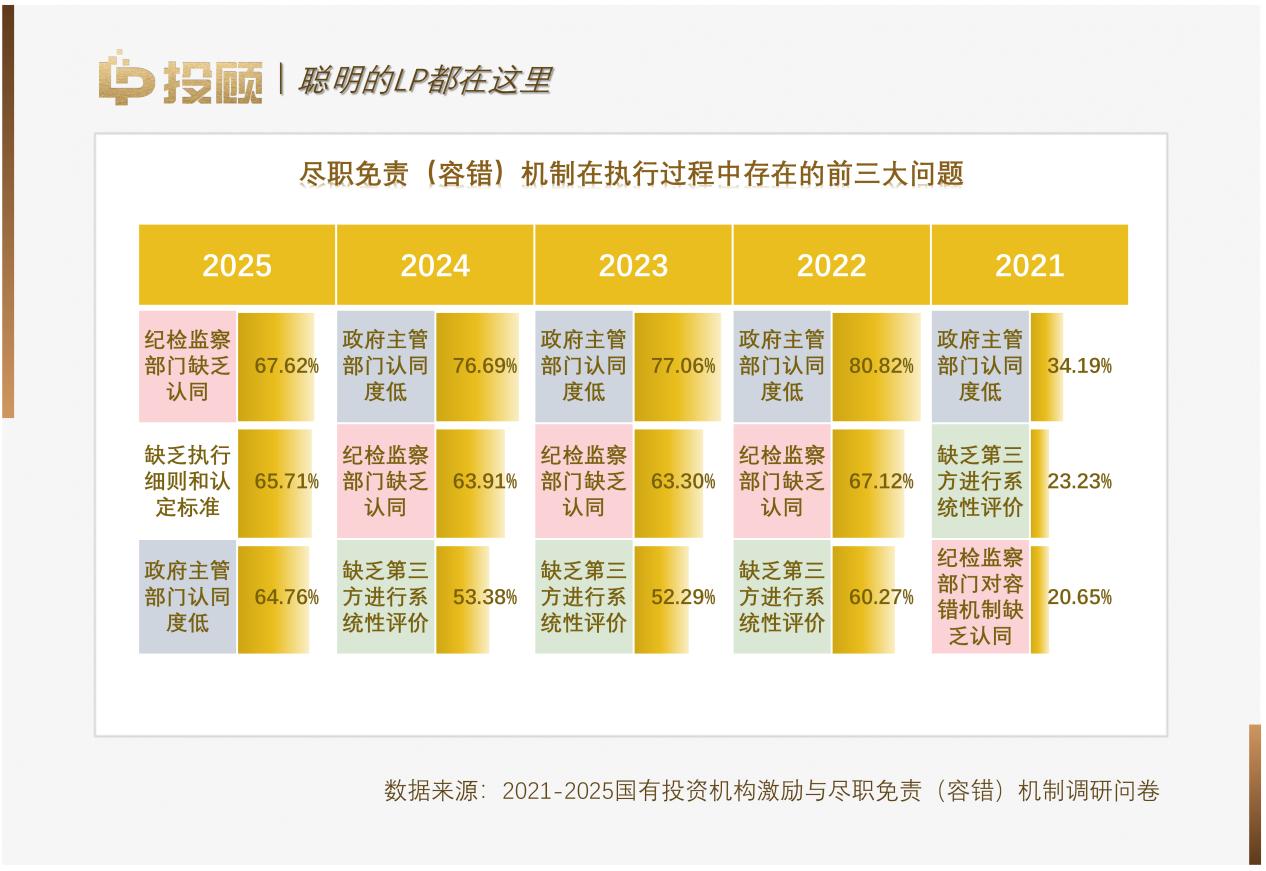 報(bào)告通過詳實(shí)的調(diào)研數(shù)據(jù),揭示了國有投資機(jī)構(gòu)在2025年面臨的深層次體制機(jī)制變化:行業(yè)已跨越“從無到有”的初步探索,全面進(jìn)入“從有到優(yōu)”的落地攻堅(jiān)深水區(qū),如何量化容錯(cuò)標(biāo)準(zhǔn)、用好考核指揮棒以及應(yīng)對(duì)退出難題成為全行業(yè)的關(guān)注焦點(diǎn)。
