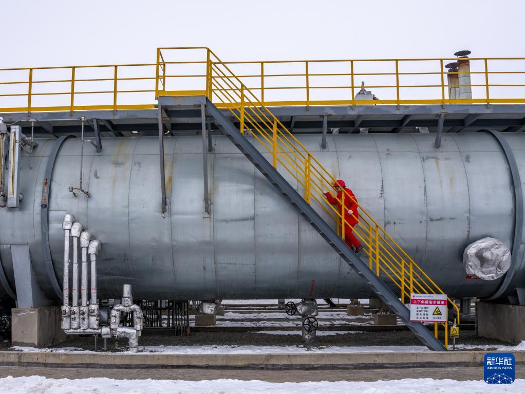 12月8日,在新疆吉木薩爾國(guó)家級(jí)陸相頁(yè)巖油示范區(qū),中國(guó)石油新疆油田頁(yè)巖油聯(lián)合站員工在巡檢設(shè)備。