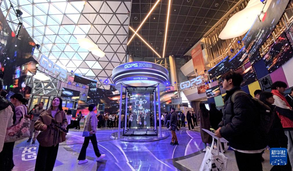 12月12日,參觀者在機(jī)器人展示裝置前駐足觀看。