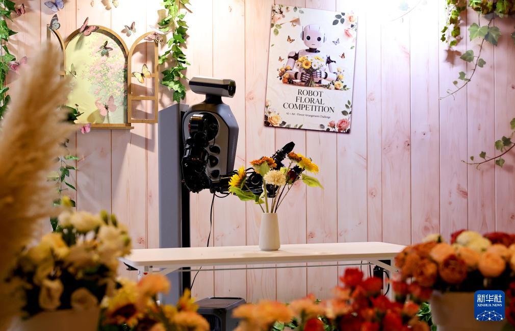 12月12日,機(jī)器人在插花競技場內(nèi)移動。