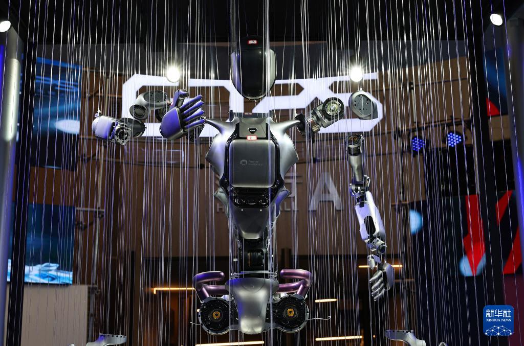 12月12日在活動現(xiàn)場拍攝的機(jī)器人展示裝置。
