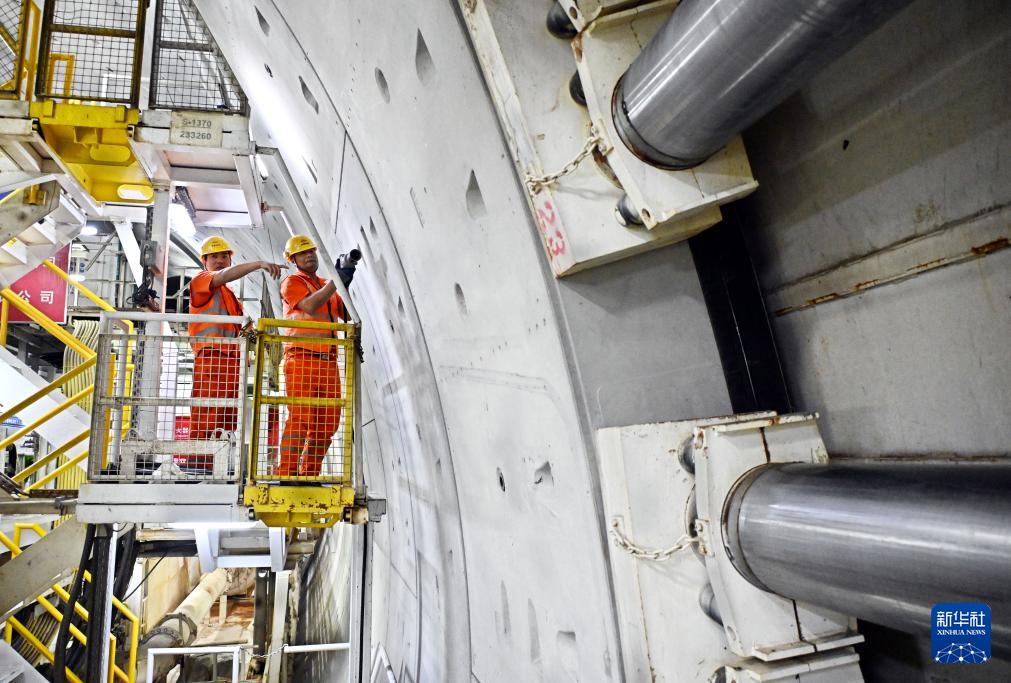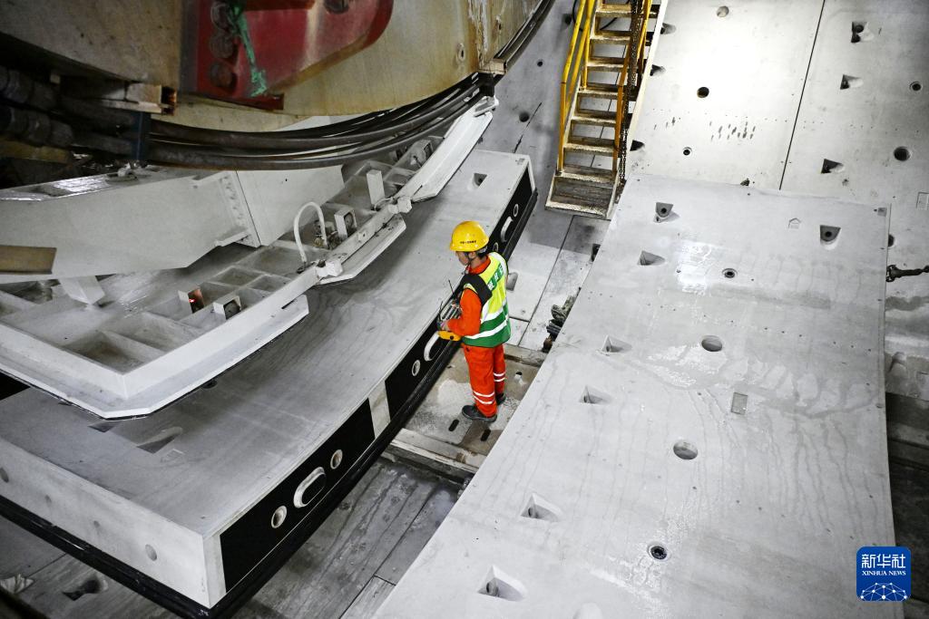 12月15日,中鐵十四局建設(shè)者在海平面下91米進(jìn)行管片拼裝作業(yè)。
