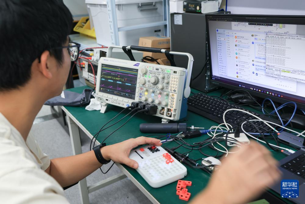 10月29日,在位于廣東佛山順德廣東工業(yè)設(shè)計(jì)城的計(jì)客總部,研發(fā)人員對(duì)超級(jí)積木的硬件進(jìn)行測(cè)試。