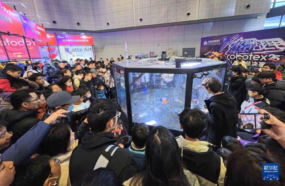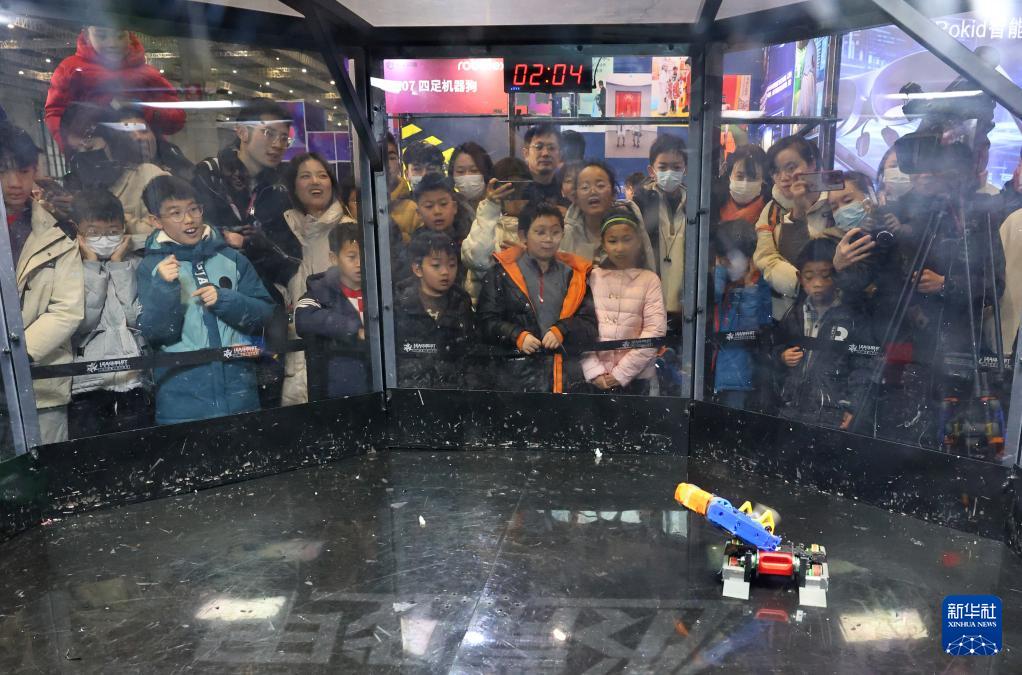 1月2日,參觀者在觀看機(jī)器人格斗比賽。