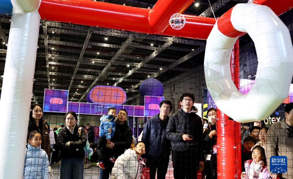 1月2日,參觀者在觀看無人機(jī)場地障礙穿越表演。