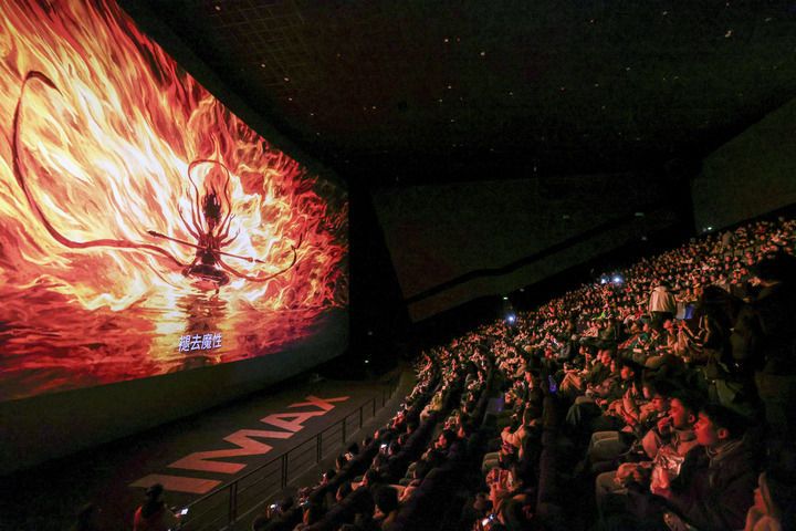 2025年2月25日,觀眾在貴州省貴陽市越界影城觀看電影《哪吒之魔童鬧海》。該片打破了中國影史票房紀錄。新華社記者 歐東衢 攝