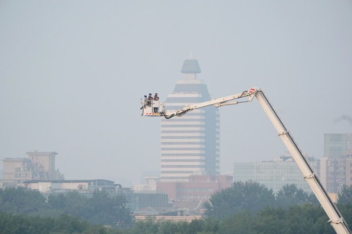 2025年9月3日清晨,報道紀念中國人民抗日戰(zhàn)爭暨世界反法西斯戰(zhàn)爭勝利80周年大會的媒體記者在工作中。新華社記者 賴向東 攝