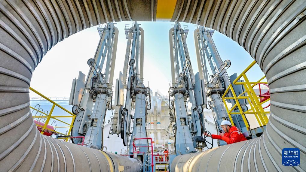 1月5日,工人在國(guó)家管網(wǎng)天津LNG接收站碼頭巡檢。
