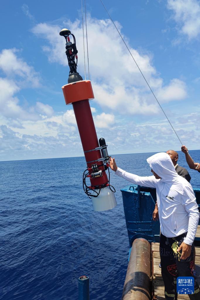 這是我國自研海洋生物地球化學(xué)原位傳感器搭載Argo浮標(biāo)海試布放現(xiàn)場(2025年5月15日攝)。