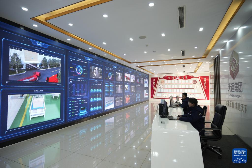 1月13日,河北省遷安市天道物流園區(qū)智慧控制中心工作人員在實時監(jiān)控鋼鐵生產(chǎn)線狀態(tài)。