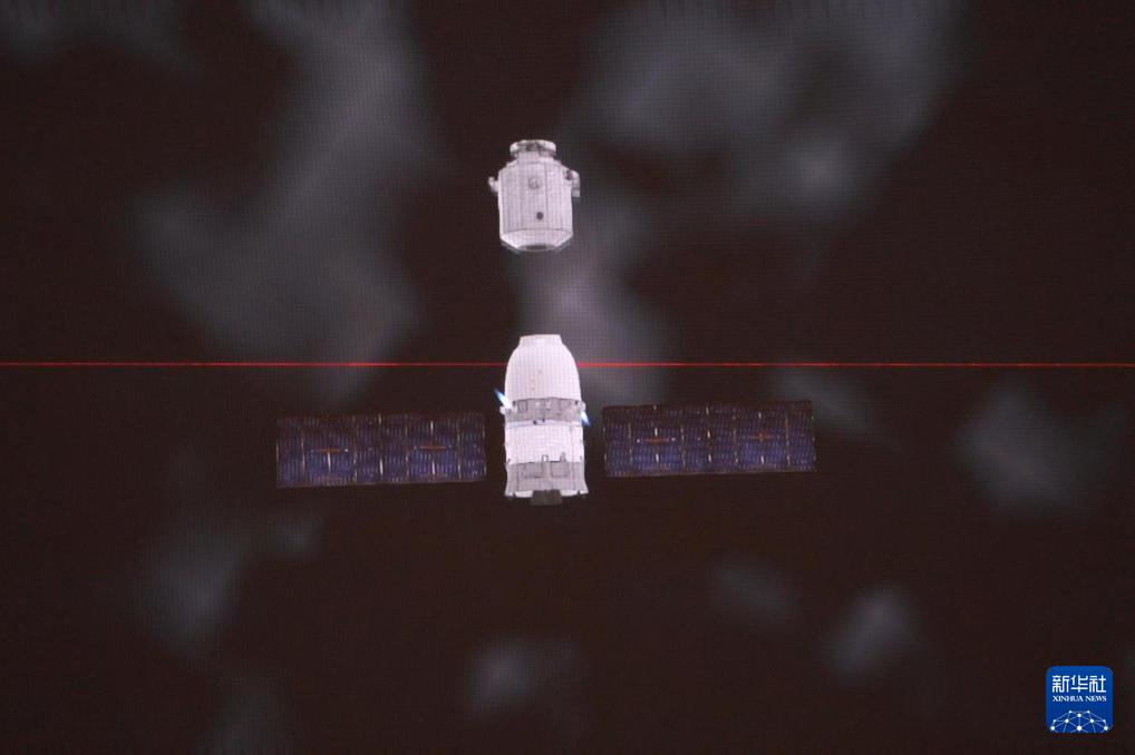 1月19日在北京航天飛行控制中心拍攝的神舟二十號(hào)飛船撤離空間站的模擬畫面。