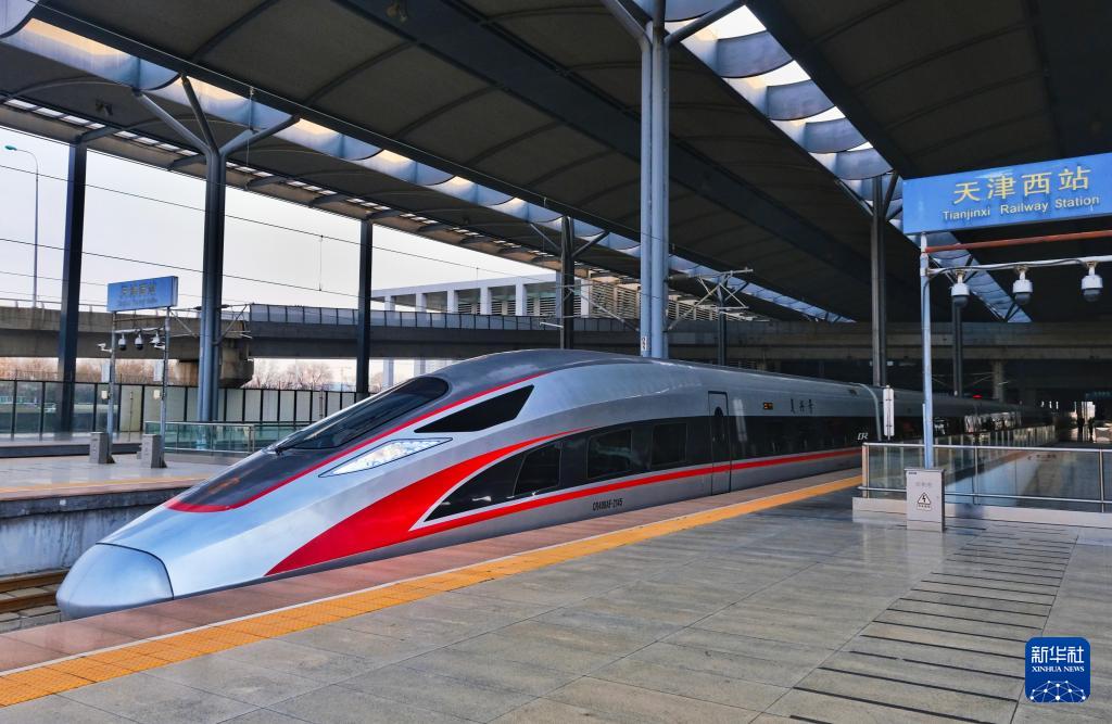 1月26日,一列京津冀環(huán)線高鐵列車從天津西站駛出。